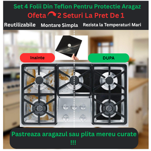 Setul conține 4 folii de protecție din Teflon, compatibile cu orice model de aragaz sau plită.